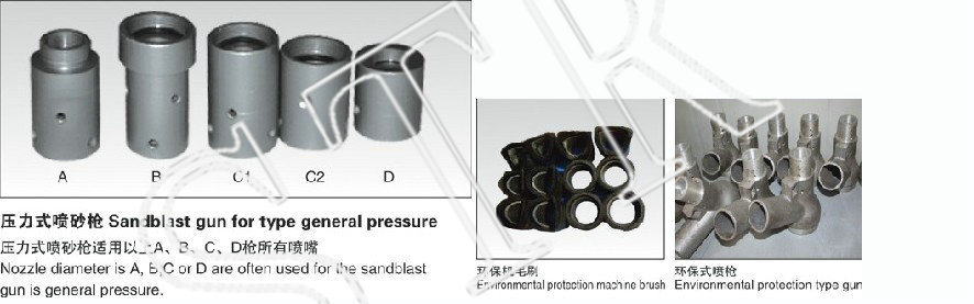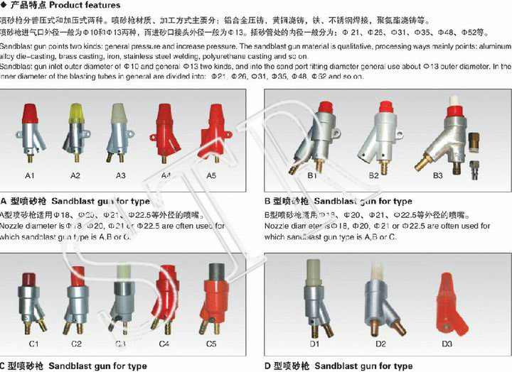 噴砂槍分普壓式和補壓式這兩種。噴砂槍布料材質、加工制作玩法其主要分:鋁鋁合金板壓鑄,純銅澆鑄,鐵、不銹鋼304焊接加工,聚氨酯泡沫澆鑄等。