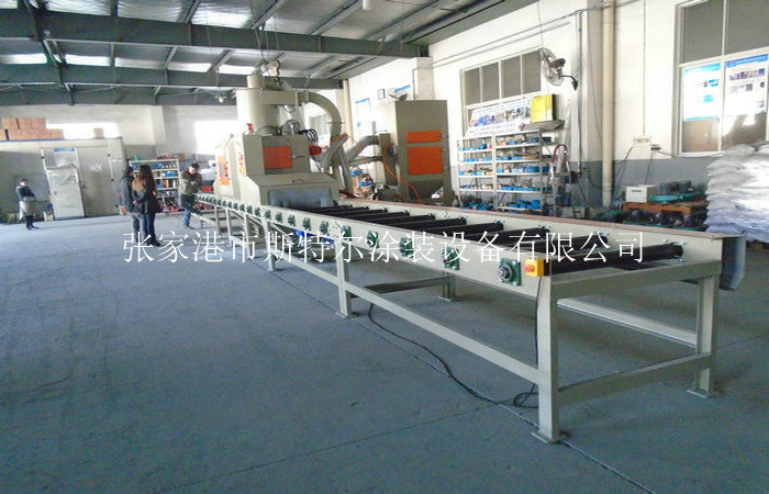 5.斯特爾設計制造的通過式噴砂機可以實現皮帶輸送、鏈條式輸送、滾軸式輸 送、懸掛式輸送等方式結構。