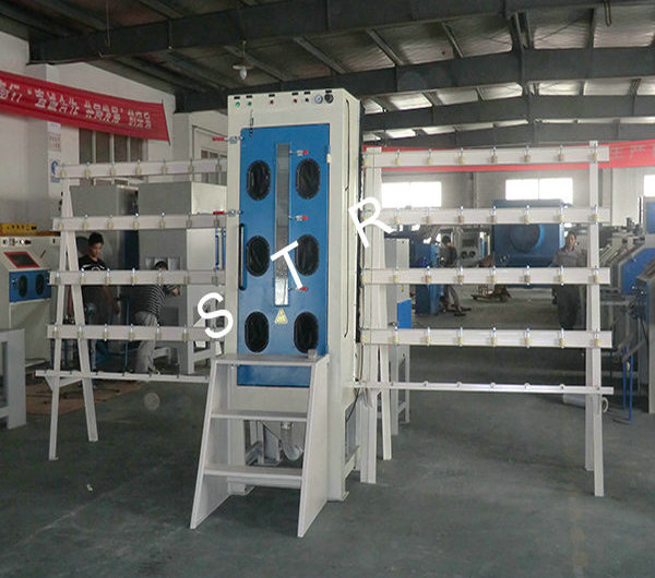 Flat glass, marble, metal plate vertical through the type dry sandblasting machine,